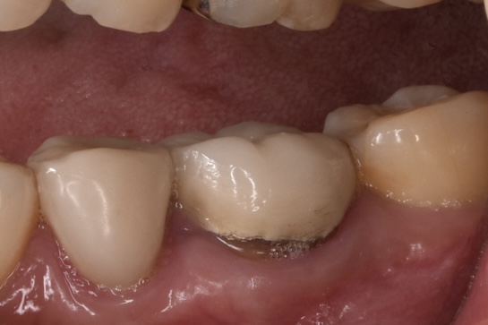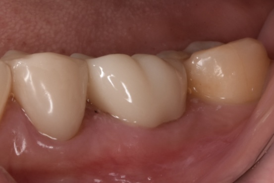 奥歯のやりかえです。真ん中に写っている左下奥歯(左側下顎第一大臼歯)の再治療です。神経治療からやり直しています。*色彩セラミックプラン