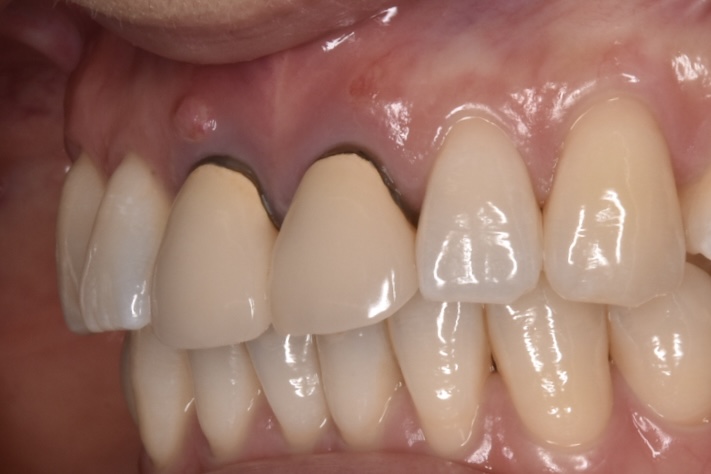 黄色い前歯の上の歯ぐきの部分にプクッとした腫れがあります
