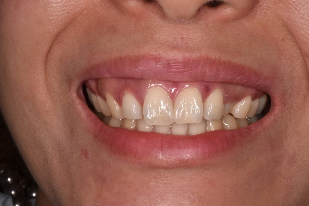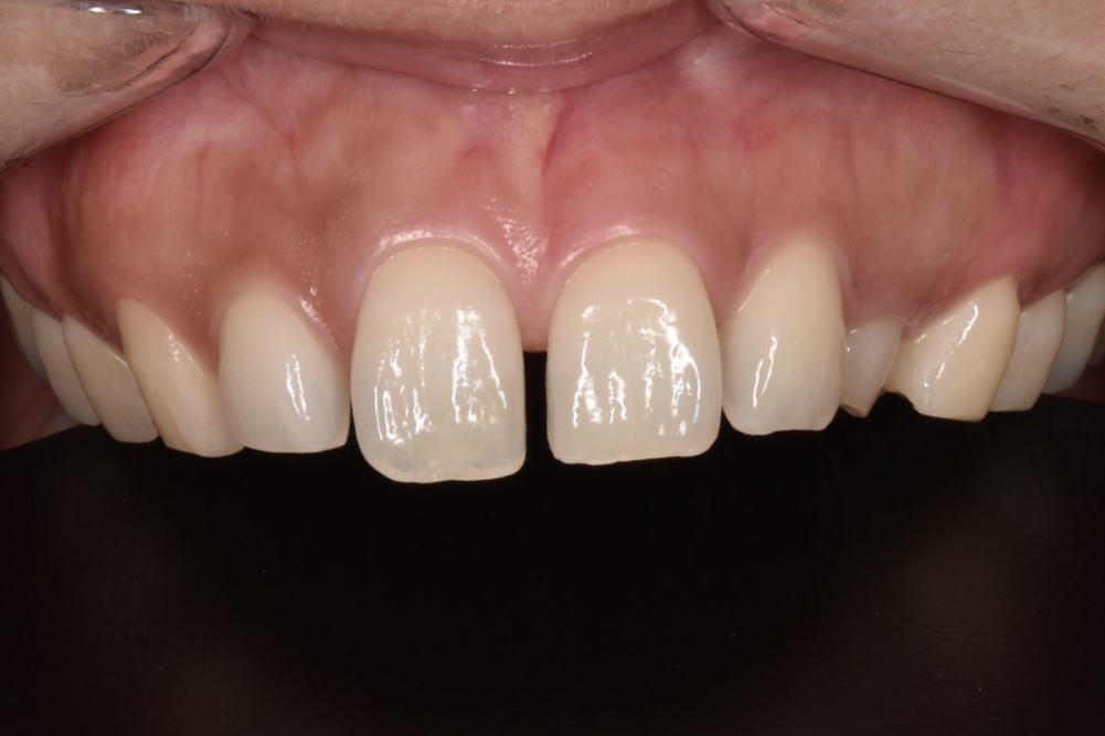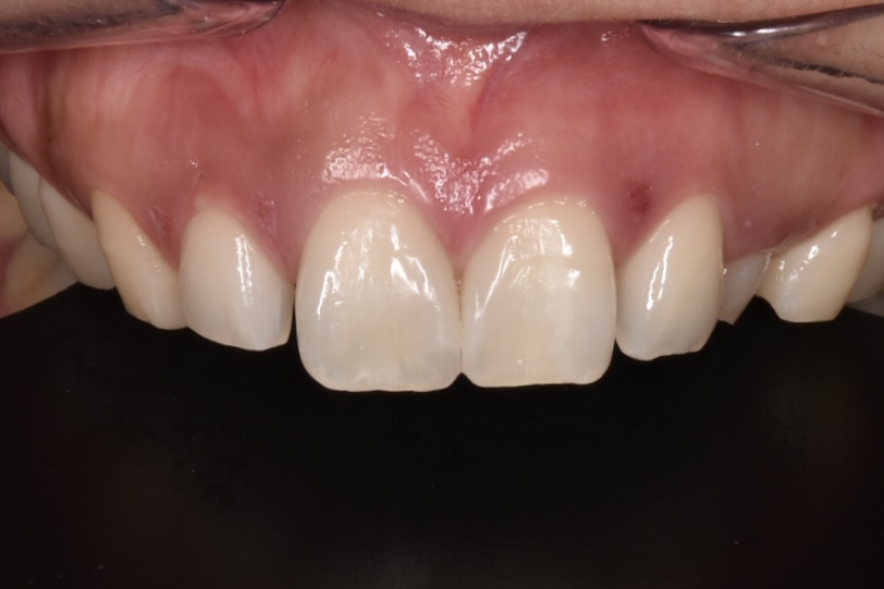 前歯2本がやや細く、横の膨らみが少ないため長方形のような形であることがわかります。また右と左ではの長さが違うためこちらも出来るだけ目立たないようにしていきたいと思います。