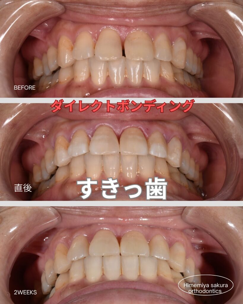 すきっ歯の改善にはセラミック・矯正・ラミネートベニア・ダイレクトボンディングがあります。この中で最も早くかつ低侵襲な治療がダイレクトボンディングです。基本的に歯を削らずに1日で治療が終了するため、通院回数も1−2回と極端に少なく済みます。このため今回のモニター様にはダイレクトボンディングが最も適したものとしてご提案させて頂きました。