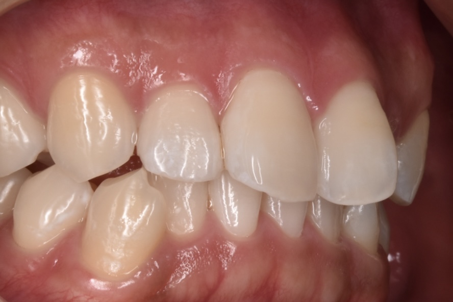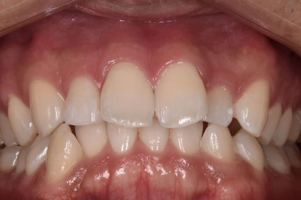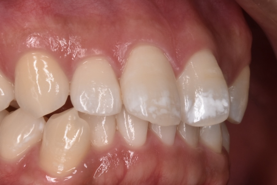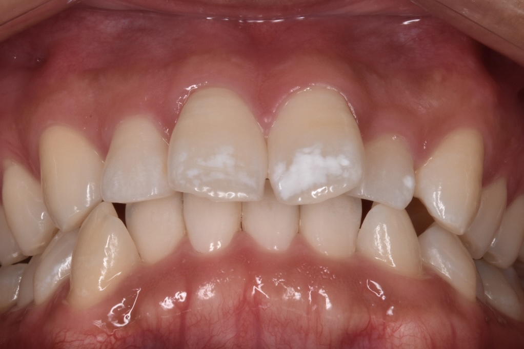 前歯3本にホワイトスポットが認められますが、改善の希望は前歯の2本です。